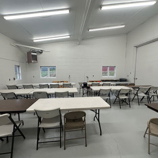 Common Space in machine shop for lunches, cleaning brushes, fridge and sink, sitting area, large work table